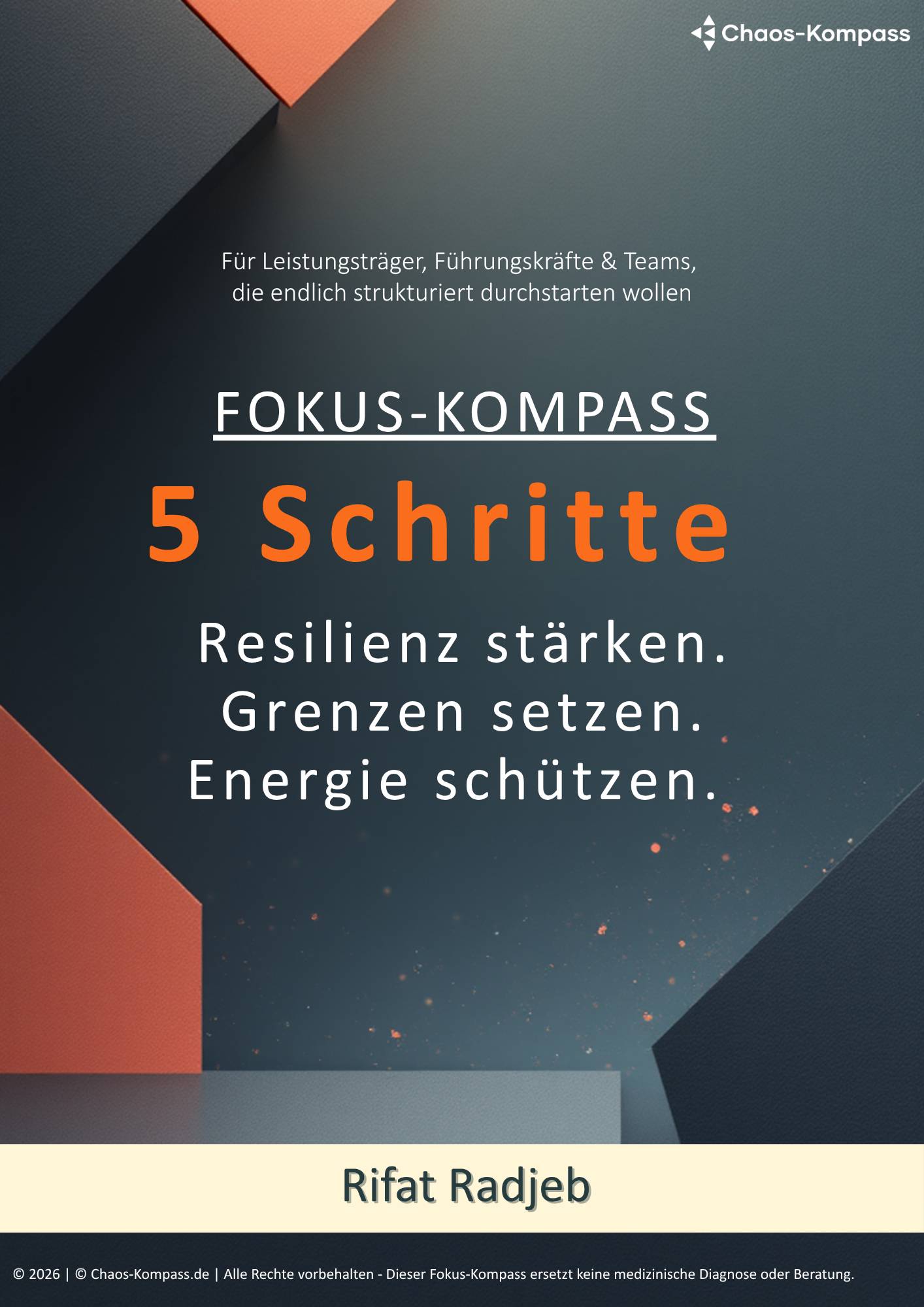 Du erhältst den 5-Schritte-Kompass als vollständiges PDF: Eine evidenzbasierte Roadmap mit klaren Selbstreflexions-Fragen für mehr Resilienz und Fokus im Arbeitsalltag.
